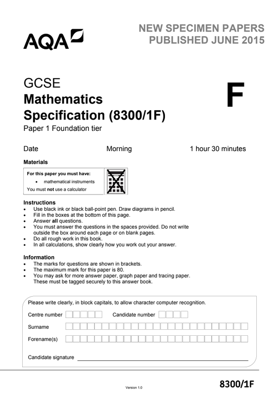 Aqa 83001F Specimen Qp