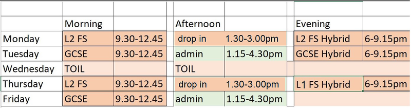 Tutor availability 2022-23