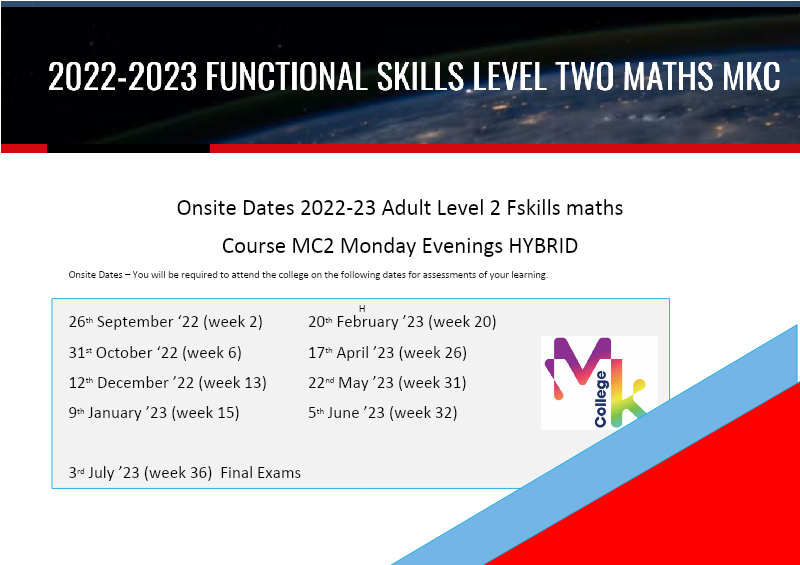 Onsite Dates L2 Fskills Maths Monday Evenings Mc2 Hybrid