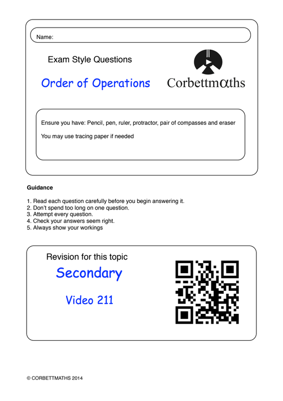 Order Of Operations Pdf Corbette Maths