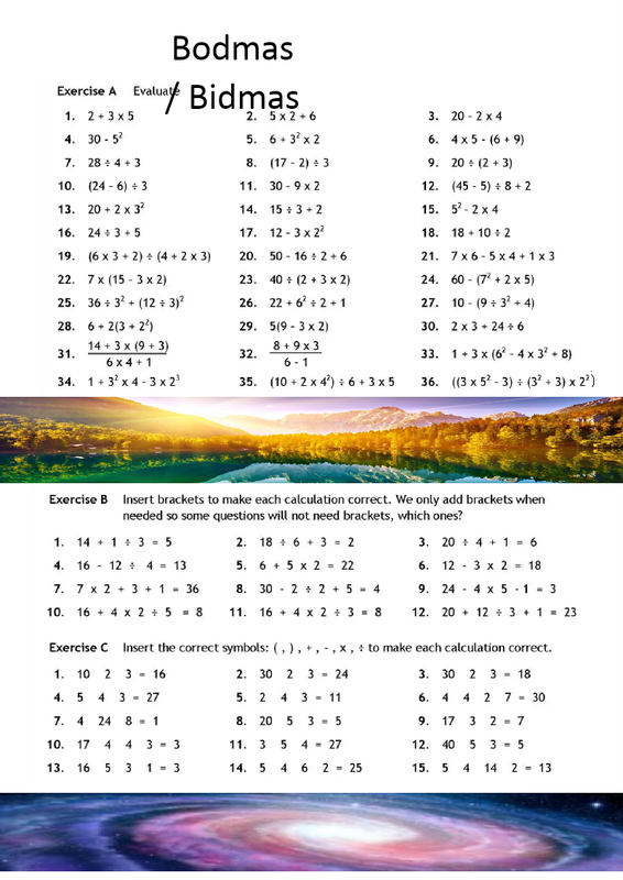 BIDMAS Worksheet and Answers
