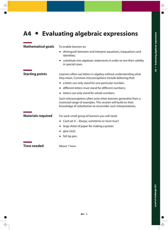 ACTIVITY: Match up different ways to visualise Evaluating Algebraic Expressions. 4 sheets to match.