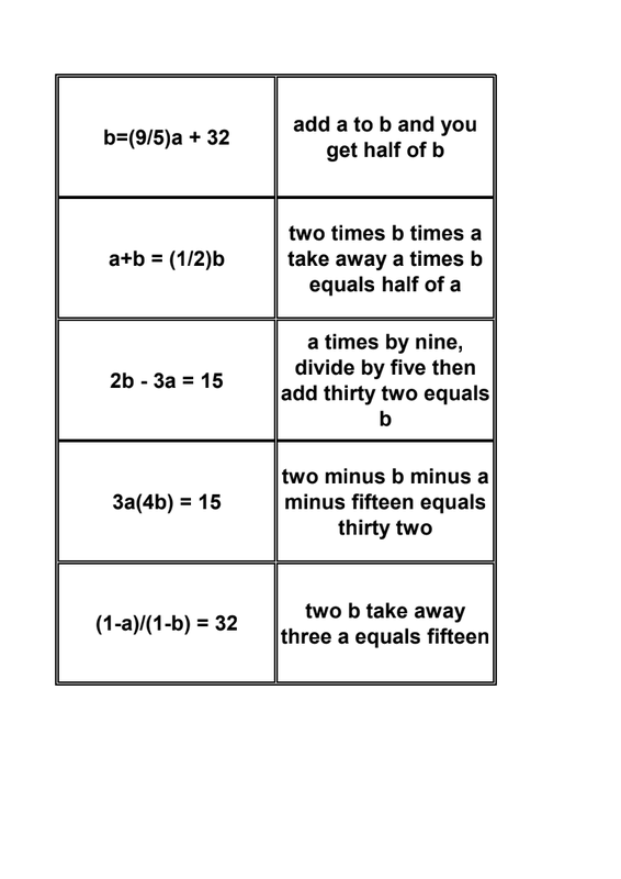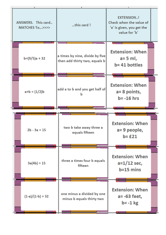 ACTIVITY: Formula Matching Cards.. Match the left hand side to the right hand side