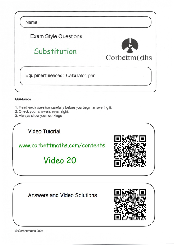 Corbette Maths Substitution Into Formulae Answers