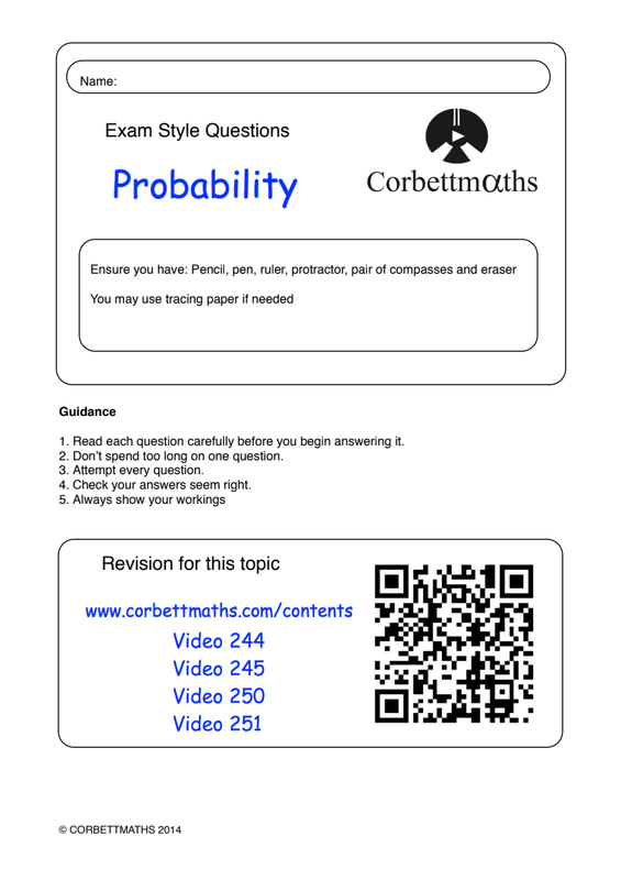 Probability Worksheet Corbette Maths