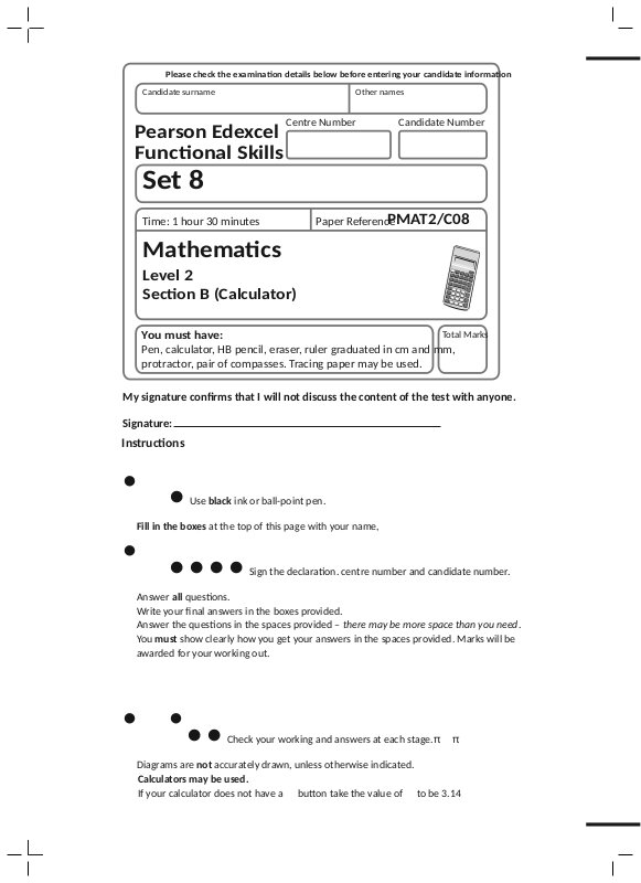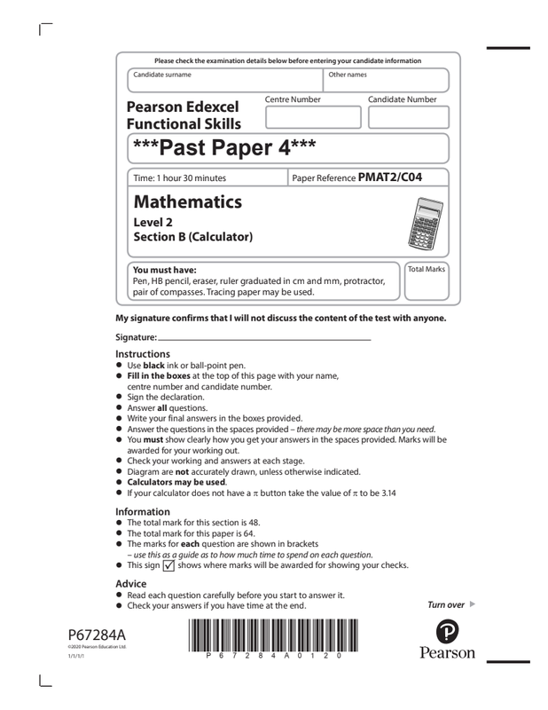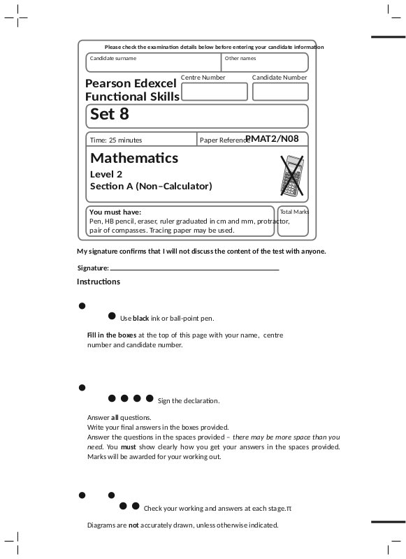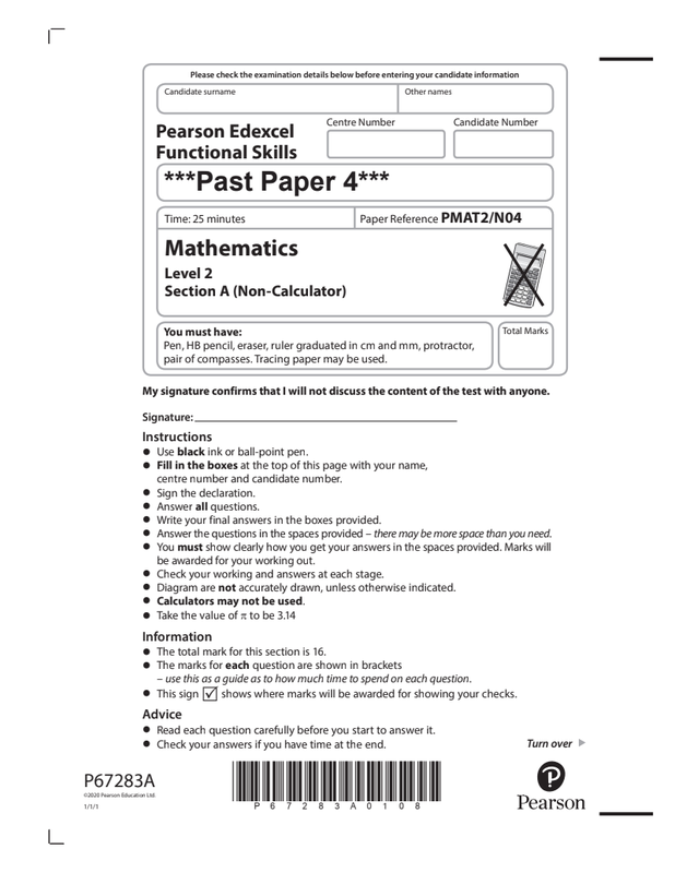 Functional Skills Maths Level 2 Full Non calculator Exam