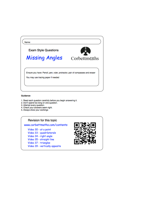 Angles Exam Style Questions Worksheet