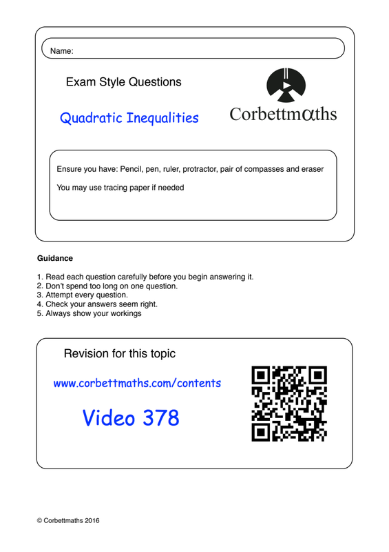 Quadratic inequalities GCSE maths revision guide, including step by step examples, exam questions and free quadratic inequalities worksheet.