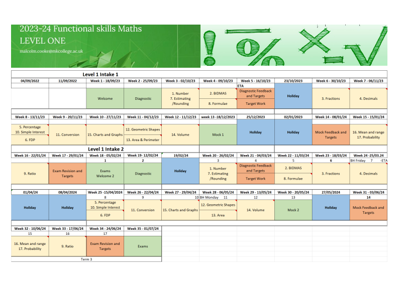 2023-24 Functional skills Maths LEVEL ONE