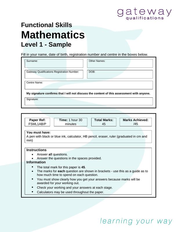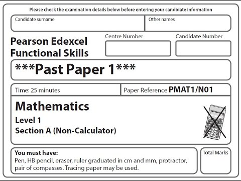 Functional Skills Maths L1 Past Paper 1 Pearson Edexcel