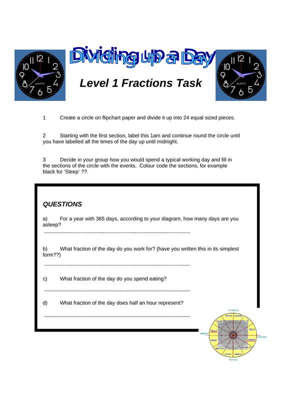 Activity : Level 1 Fractions Task Read the instructions and complete the questions. Check your answers with the tutor.
