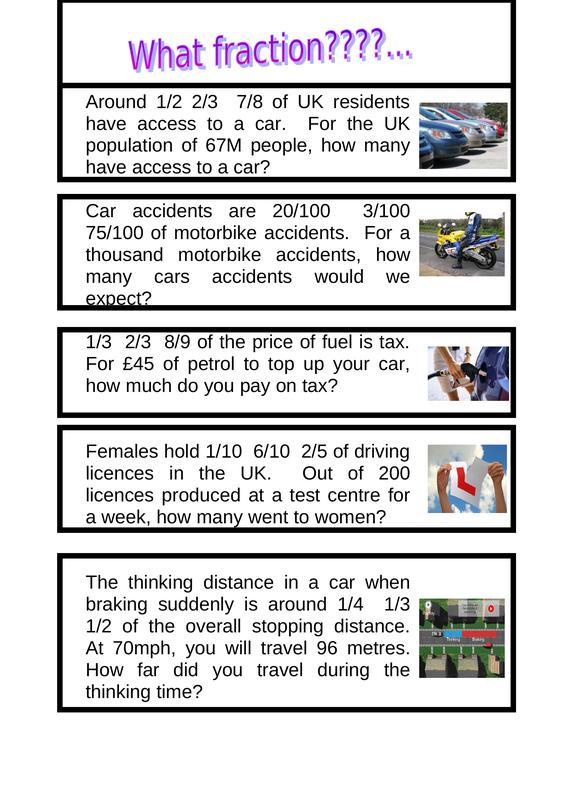 Activity: Discussion. Fraction Questions Transport Discuss with others which fraction you think is correct out of the 3 options in each question, then answer the question using YOUR option. See the answer sheet to check!!...