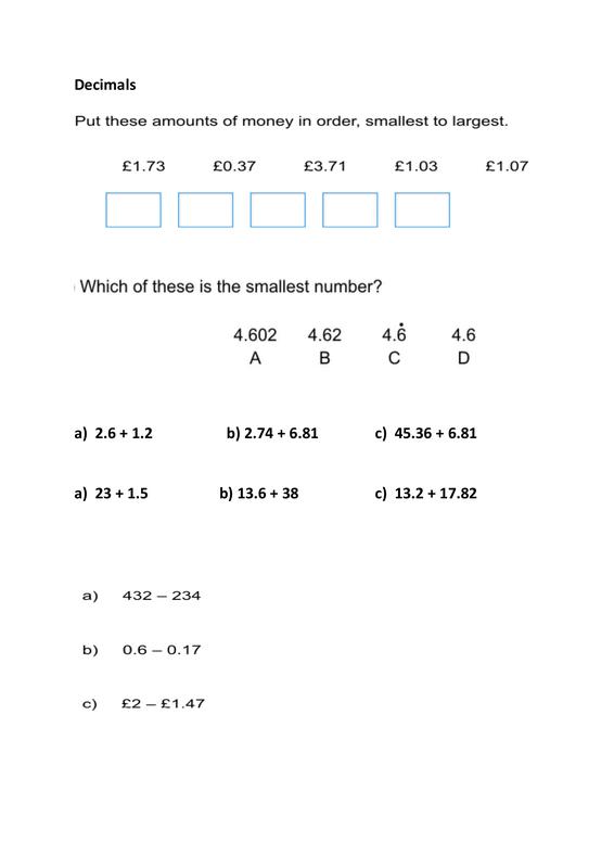 Activity: Read through and complete questions in this pp5 L1 Decimals a) answer the exam style problems b) check answers with tutor c) set any targets on this topic