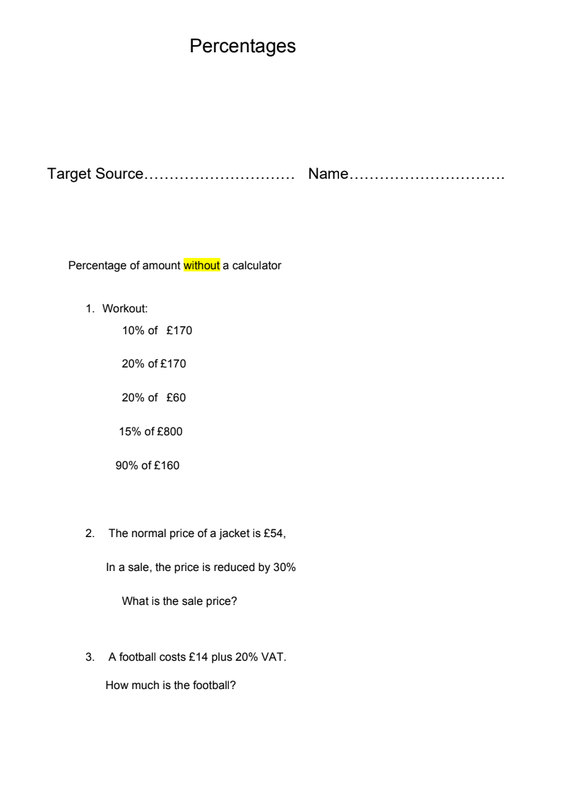 Percentages revision, worksheets and practice questions for functional skills maths. All the resources in one place.