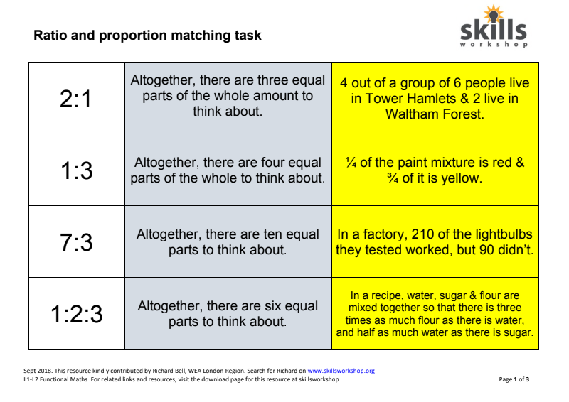 L1L2Ratiopropmatching ACTIVITY: Discuss the ratios seen and their equivalents to the statements matched with them.