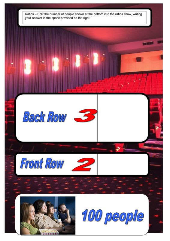 Cinema Seating Split Ratio1 ACTIVITY:... Can you take the number of people visiting the cinema and split them into the group sizes show (using the ratios)..?