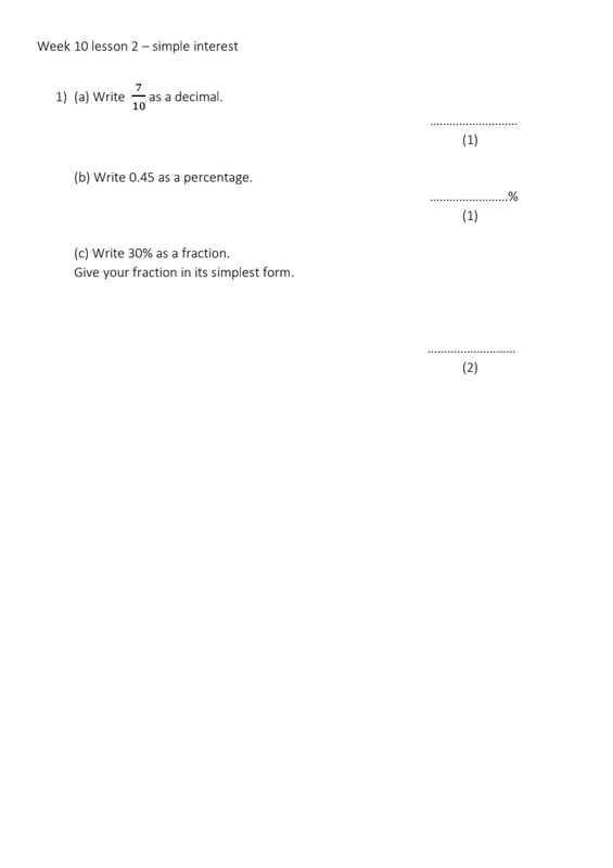 LEVEL ONE - Fraction Decimal And Percentages POWERPOINT